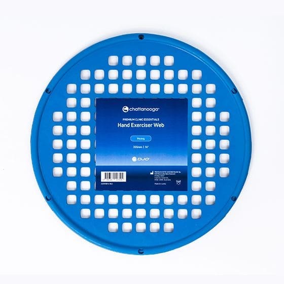 The Chattanooga Premium Clinic Essentials Hand Exerciser Web performs flexion, extension, opposition and supination exercises. Resistance may be modified by adjusting the hand position, depth of finger insertion, or by switching to a different resistance (colour) web.