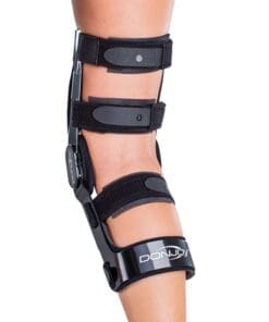DonJoy braces solid frame and strap configurations keep femur and tibia in fixed position, preventing valgus and varus movements while allowing natural range of motion.