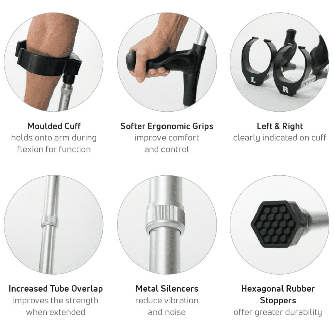 Robust Weight Capacity: Certified and tested to support up to 150kg, DonJoy Forearm Crutches deliver sturdy reliability for users of different body types, offering peace of mind during recovery.