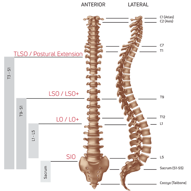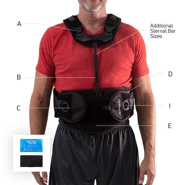 The DonJoy IsoFORM® TLSO – provides trunk restriction and stability from T3-S1 in three planes of motion with its overlapping panel system; Anterior, Posterior and Lateral Extension panels and a telescoping aluminum sternal bar that is adjustable and malleable for a custom fit.